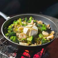 カマンベールチーズがトロトロに溶けた香り高いアヒージョは、エビ、マッシュルーム、エリンギ、ブロッコリーなど好みの具材でアレンジ自在です。ニンニクたっぷり、鷹の爪のピリ辛感が効いたオリーブオイルは、バケットやフランスパンを浸して食べる至福のおいしさ。パーティーやキャンプでも大活躍の一品で、ワインとの相性も抜群。具材を入れて温めるだけの手軽さも魅力です。