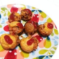 たこ焼き器で作る、ミニサイズの簡単オムライスです。焼き上がりは表面はカリッと仕上がりおいしいですよ。一口サイズでとても食べやすく、見た目にも可愛らしいですよ。ぜひお試しくださいね。