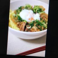 - 7 器に6を盛り、5、2の順にのせ、ラー油をかけ、小ねぎを散らします。真ん中に温泉卵をのせて完成です。