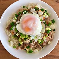 豚肉はお好みの部位でお作りいただけます。辛味が苦手な方はラー油の量を調整してください。焼き肉のタレはお好きな物をお使いください。ご高齢の方や、2才以下の乳幼児、妊娠中の女性、免疫機能が低下している方は、卵の生食を避けてください。お好みで長ねぎの量は増やしてお召し上がりくださいね。