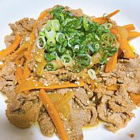 粉唐辛子を入れなかった+にんじんを入れたからかもしれないですが、手本の動画みたいにならずに水っぽくプルコギみたいになってしまいました…味はまあそこそこでした。
