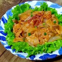 豚バラに焼き色を付け玉ねぎ投入。強火で炒めて出来上がり。簡単で白米が進む美味しさでした。