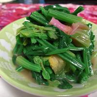 根っこまで食べられる高級ほうれん草を使いました!ナンプラーとスイートチリソースを消費したかったのでちょうどよかったです!彼氏にも好評でした!たまには違うお浸しもいいなーと思いました!
