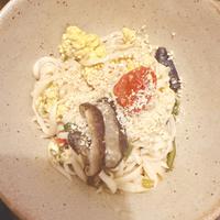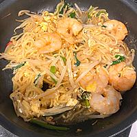 低糖質麺が売っていなかったので、糸こんにゃくを使用。エビの代わりに シーフードミックスを使いました。