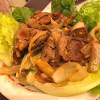 - 3 フライパンにサラダ油を入れて中火で熱し、2を入れます。豚ロースに火が通り、全体に味がなじんだら火から下ろします。