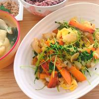 豆苗とエリンギのめんつゆ卵炒めのご紹介です。豆苗とエリンギの食感に、ふんわりと焼いた卵の旨味がよく合います。味つけはめんつゆでお手軽に作れますので、ぜひお試しくださいね。