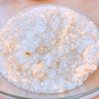 - 1 大きめの耐熱ボウルにごはん、水、(A)を加えてよく混ぜ合わせ、ラップをして600Wの電子レンジで3分ほど加熱します。