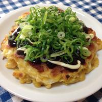 - 7 お皿に盛り付け、お好み焼きソースとマヨネーズをかけ、2を乗せて完成です。
