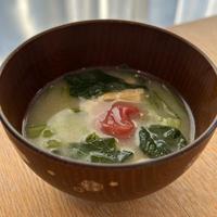 酸味がポイント 小松菜と梅干しの味噌汁 レシピ・作り方
