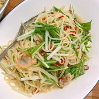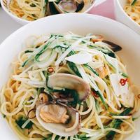 あさりと水菜のペペロンチーノパスタ レシピ・作り方