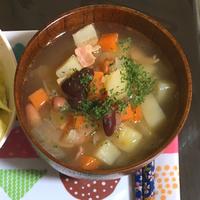 じゃがいもニンジンも入れて食べるスープにしました。美味しい(∗ˊ꒵ˋ∗)