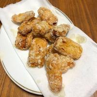 下味はビニール袋でもみもみ、片栗粉をまぶす際も袋でまぶしましたが、軽く握って片栗粉をしっかりつけました!