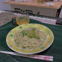 ゴロゴロしたアボカドソースをのっけて食べました。めんは好きなだけ笑