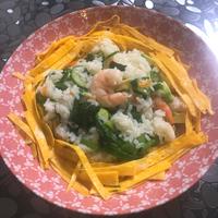 米1合(150g)を炊飯するとごはん350g程度になります。パーティーなどにもおすすめの一品となっておりますのでぜひ作ってみてくださいね。おいしく仕上がりますように。