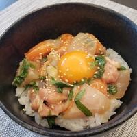 - 6 ごはんを盛り付けた丼に5、卵黄をのせて完成です。