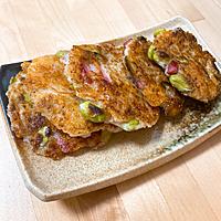 長芋のモチモチ食感が魅力的な一品です。枝豆とベーコンの食材の組み合わせが絶妙で、チーズの香ばしさが引き立ちます。混ぜて焼くだけの簡単調理なのも嬉しいポイント。ふわっとした生地の表面はこんがりと焼き上がります。そのままでも美味しいですが、ポン酢や唐辛子醤油をつけるとさらに美味しく楽しめます。ツナを使ったアレンジもおすすめです。