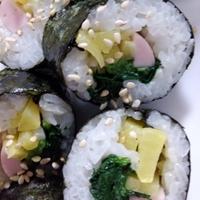 韓国の海苔巻き、キンパのご紹介です。カリカリッとしたたくあんの食感が口の中でお楽しみいただけます。ごまの風味がたっぷりと味わえるので、一口食べたら止まらなくなるはず!ぜひお試しください。