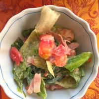 ベーコンの代わりにスモークソーセージ、パプリカも加えてみました!こんな簡単にシーザーサラダができるなんて!ありがとうございます!