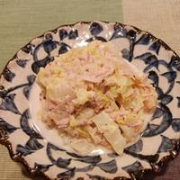 大きめにザク切りした白菜があったからそのまま使用。ぎゅっとしっかり水切り、味ボケなく濃厚な味付けに。ツナはハム1Pで代用、白ごまトッピング、次はレシピ通りツナで✏️