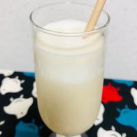 - 2 ミキサーにバナナ、牛乳、きな粉、氷を入れて全体が混ざるまで撹拌します。