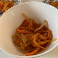 にんじん、れんこん、大根の根菜3種を使用して、きんぴら風に仕上げました。具材に味がしっかりと染み込み、冷めても美味しくお召し上がりいただけますよ。ぜひお試しくださいね。