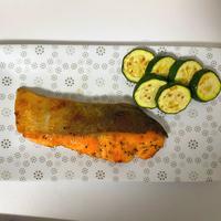 - 1 バットに鮭を置き、塩、黒こしょうを両面に振ります。
