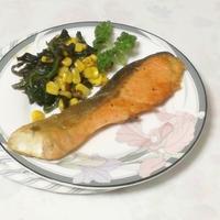 鮭が小さめだったので、冷凍のほうれん草とコーンも炒めました。