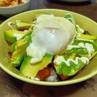 スパムとアボカドがあったので、温泉卵も作って、美味しく出来ました☆