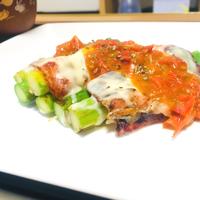 みなさんも一度は作ったことがあるアスパラベーコンを、今回はイタリアン風にアレンジしました。アスパラベーコンの上に、モッツァレラチーズと、トマトソースをかけるだけの簡単なレシピです。アスパラベーコンに、ひと手間加えるだけで、ご家庭でも楽しめる一品に大変身です。是非お試しください。