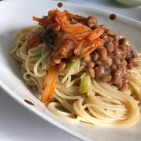パスタに納豆キムチあいすぎる!めちゃくちゃ美味しかったです❤️