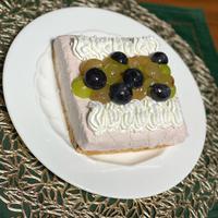 巨峰をまるごと使った贅沢なヨーグルトムースケーキのご紹介です。 皮からもぶどうのエキスを煮出して使用し、実もムースの中に贅沢にたくさん入れていますので、食べた時の食感がジューシーでとても美味しいですよ。 トッピングはお好みで楽しんでくださいね。