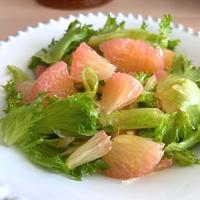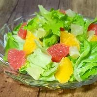 柑橘類とレタスを組み合わせたサラダです。酸味と甘味が合わさって、デザート感覚のサラダとして楽しめますよ。おもてなしの前菜としても華やかにテーブルを彩ります。手作りのフレンチドレッシングでぜひお楽しみくださいね。