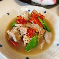 夏の冷製。賽の目切りがおめでたいとされているので頑張って切りました。干しホタテ貝柱は高いので、ホタテ貝柱の水煮缶で。その場合汁は入れ過ぎないようにして、のっぺいの基本の味がいきる程度に。イクラが売ってなかった!よそってから、三つ葉ちらして、イクラをのせる予定が。蒲鉾はよそってから、彩りで乗せました。缶の銀杏を入れましたが、銀杏の代わりに冷凍枝豆のときもあります。