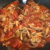 トマト缶使い切りたかったのでレシピより多い400g(水はそのまま、他の調味料は2倍)で作ったからかトマト味が強めだけど、トマト好きなのでサッパリしていて好みの味でした✨