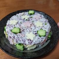 ご家庭で寿司ケーキを作ってみませんか?今回はスモークサーモンとハムを使って、花形にデコレーションをしてみました。お好みのハムや具材を入れるとアレンジが広がります。特別な行事やおもてなしに、是非お試しくださいね。