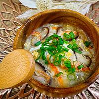 今回はオートミール使用、鶏がらスープの素の代わりに茹で鶏の茹で汁を使用しました。
