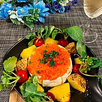 - 7 カマンベールチーズが溶けたら、3を盛り付けたお皿にのせローズマリーを添えて完成です。