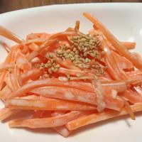 にんじんのマヨサラダのご紹介です。マヨネーズとみそだけの味付けなので、手軽に出来ます。洋風のおかずにもなりますし、みそが入っていますので、和風の一品にもなりますよ。箸休めや、おつまみにもオススメです。是非、お試しくださいね。