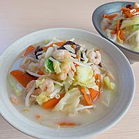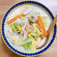 お家で作れるちゃんぽんのご紹介です。牛乳や鶏ガラスープの素を使って、手軽にちゃんぽん風のスープができますよ。コクのあるスープが簡単に作れます。野菜たっぷり具だくさんでボリューム満点です。具材はお好みでアレンジしてみてくださいね。