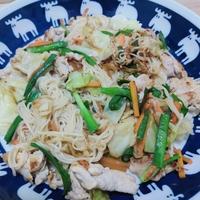 うどんの乾麺でつくりました。そうめんの様にくっつかないから食べやすい。レシピ通りの味付けにしましたがスパムを入れたのでしょっぱいかなぁ…と思いましたがちょうど良かったです。
