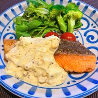 鮭は最初オリーブオイルで焼いて最後にバターを一欠入れました。