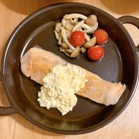 - 5 オリーブオイルを温めたフライパンに皮目を下にして4を入れ、火が通るまで中火で両面こんがり焼きます。
