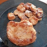 - 3 フライパンにバターを入れ熱し、両面を中火でこんがり焼きます。最後にメープルシロップと粉砂糖をかけたら完成です。