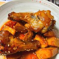 鶏手羽元とじゃがいものヤンニョムチキンのレシピのご紹介です。香ばしく揚げた鶏手羽元とじゃがいもにしっかりと絡んだ甘辛いタレでごはんがすすみますよ。お酒のおつまみにもぴったりな一品ですので、ぜひ作ってみてくださいね。