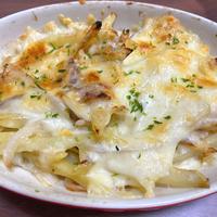 「新じゃがいもと新玉ねぎでのり塩チーズ焼き」の作り方を簡単で分かりやすいレシピ動画で紹介しています。