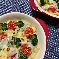 朝ご飯に♫前夜に作り置き。朝はレンジで軽く温め。猫舌🐈の子供達にはオーブントースターの作りたては熱過ぎて食べられず。