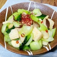 シャキシャキ食感の青菜に生ニンニクの香りが食欲をそそる本格的な中華炒めです。チンゲン菜や小松菜を使い、エビ・イカ・エリンギなどお好みの具材をアレンジできます。片栗粉を使ったとろみのある味付けが特徴で、紹興酒の風味が効いています。湯通しすることで鮮やかな色合いと食感が際立ち、中華料理店のような仕上がりに。お手軽な副菜としても大活躍します。