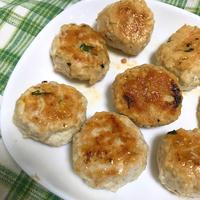 豆腐タネを包み難かったです。鶏ミンチを手のひらでよくこねて薄くのばしタネを包みました。仕上がりは鶏団子と言うには大きく…鶏ハンバーグでした😓おろしポン酢でさっぱり美味しく頂きました。