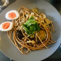 全粒粉パスタに、玉ねぎも炒めて、アンチョビペーストを使いました。仕上げにシソと刻み海苔も乗っけて美味しく頂きました^ ^