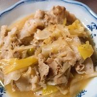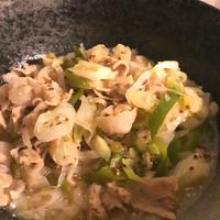 - 4 豚バラ肉を均等に広げ上に1をのせ蓋をし、弱火で3分程蒸し、長ねぎがしんなりしたら火からおろします。
